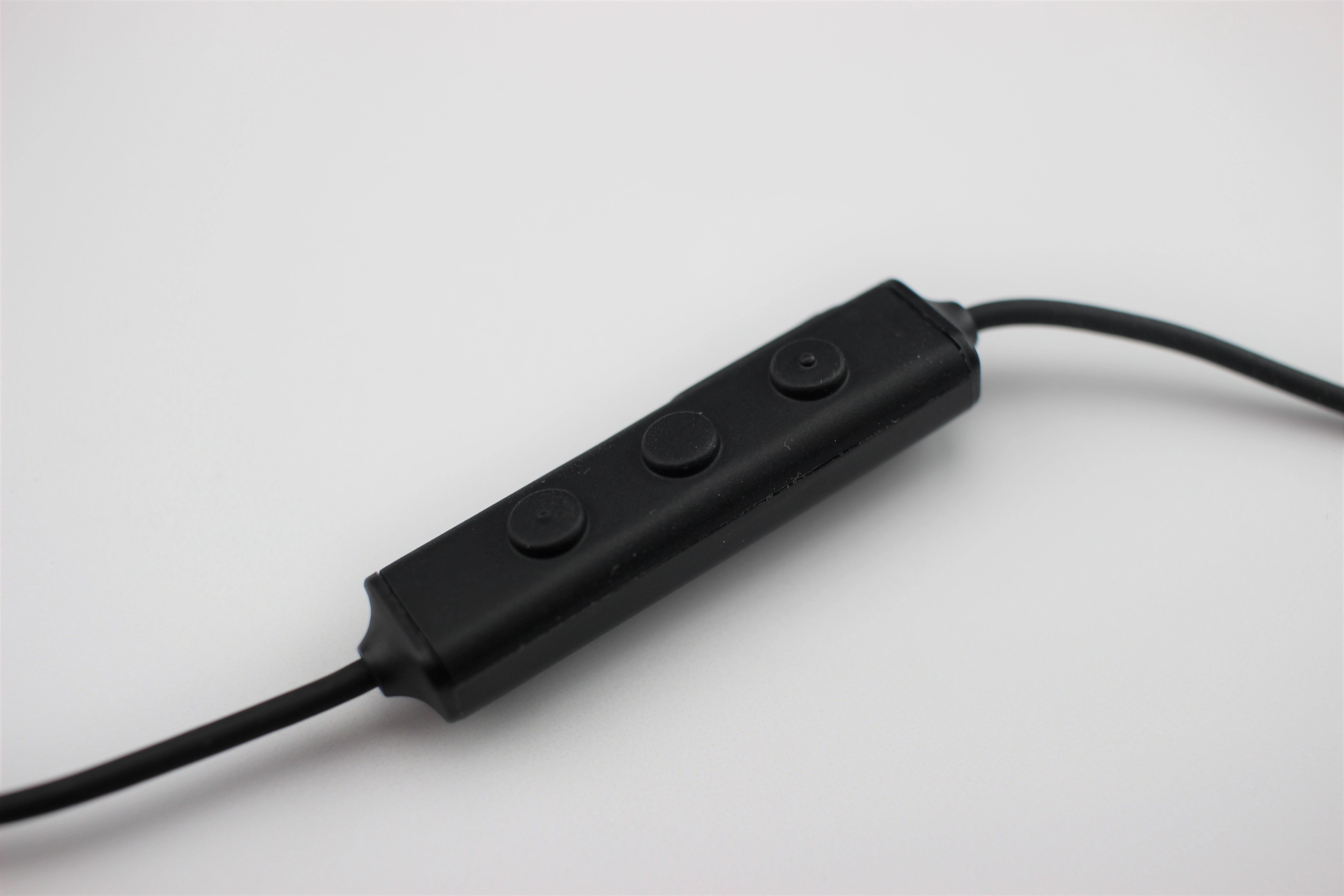Wie auch bei den Mpow Judge sind auch die Rückseiten der TaoTronics TT-BH16 magnetisch und haften aneinander. Dies ist besonders praktisch, wenn man die Hörer aus den Ohren nehmen muss, da sie so wie eine Art „Kette“ um den Hals getragen werden können. Mit einem Gewicht von 3,3 Gramm ist das Bedienelement relativ leicht und zieht keinen der beiden Hörern aus dem Ohr.