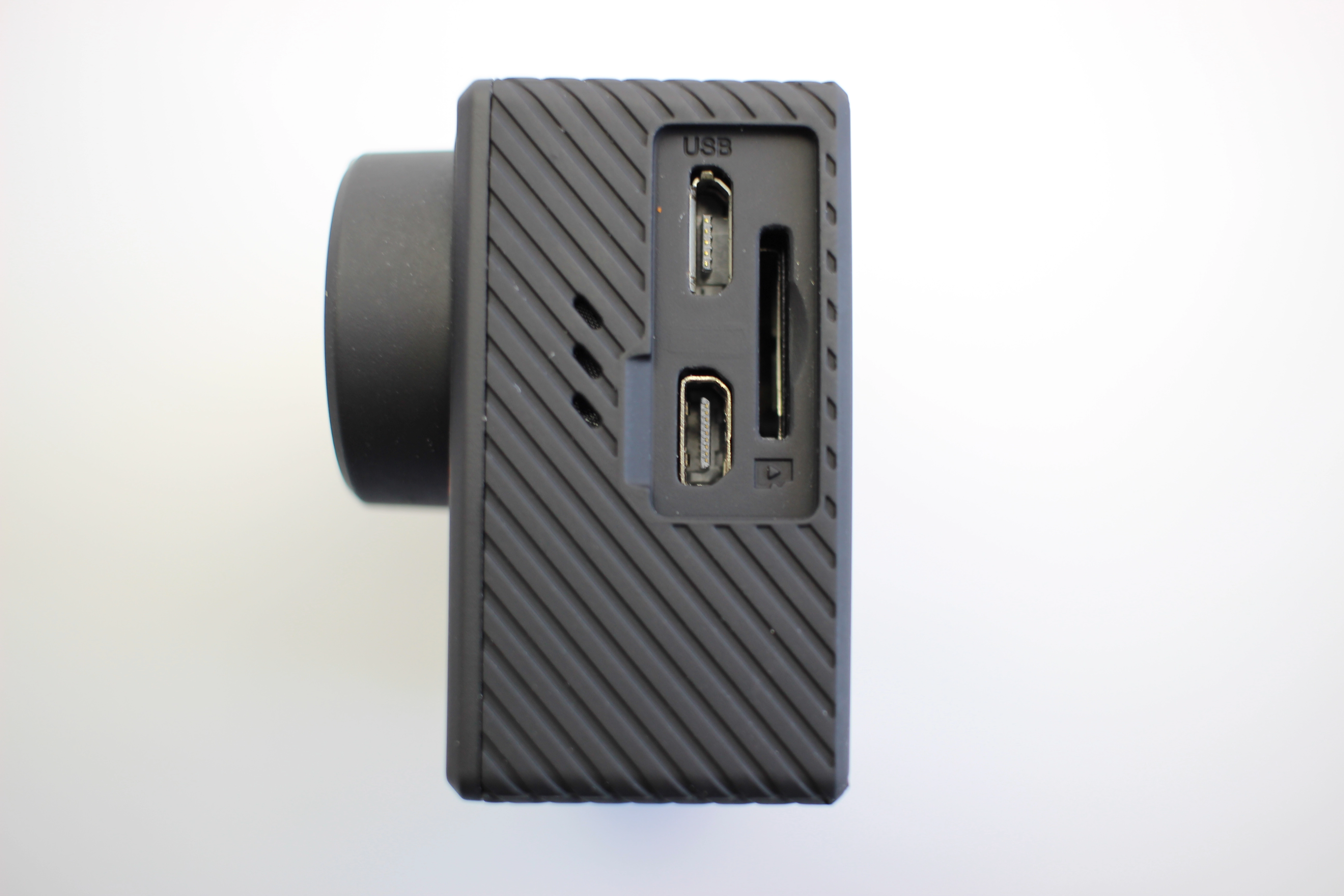 Ansonsten bietet die T5 Edge den vertrauten Actioncam-Look. Mit Abmessungen von 6,11 x 4,22 x 2,3 cm ist sie genauso groß wie ihr Vorgänger. Auf der Vorderseite findet man den Ein- und Ausschalt-Knopf neben der Linse, auf der Oberseite den WLAN-Button und an der rechten Seite zwei Navigationstasten. Gegenüberliegend befinden sich ein microSD-Slot, ein Micro-USB Port zum Aufladen und ein Micro-HDMI-Port zur Übertragung auf einen Fernseher.
