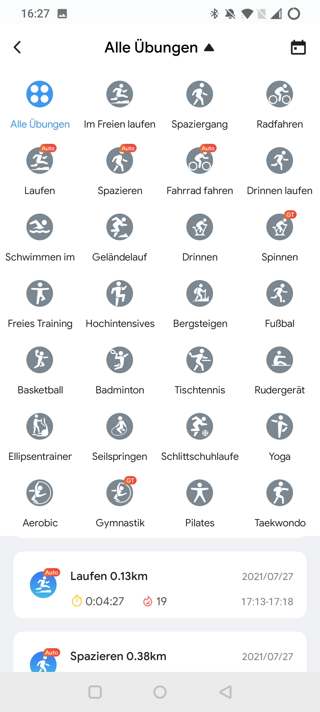 Neben den bereits erwähnten Fitnesstracking Apps gibt es natürlich auch noch eine spezielle App für Sport. Diese hört auf den Namen TicÜbung und bietet folgende Sportmodi: Laufen (Outdoor/Indoor), Spaziergang, Radfahren (Outdoor/Indoor), Freies Training, Schwimmen im Pool, Hochintensives Intervalltraining, Rudergerät, Crosstrainer, Aerobic, Trail Running, Wandern, Yoga, Fußball, Basketball, Pilates, Taekwondo, Badminton, Tischtennis und Schlittschuhlaufen. Die Modi, die im Freien genutzt werden, verwenden dann natürlich auch GPS, GLONASS und Beidou-Positionierung. Alternativ kann man das vorinstallierte Google Fit-Training mit über 100 Sportmodi nutzen, ich lasse aber wie gesagt die Finger von Google Fit.