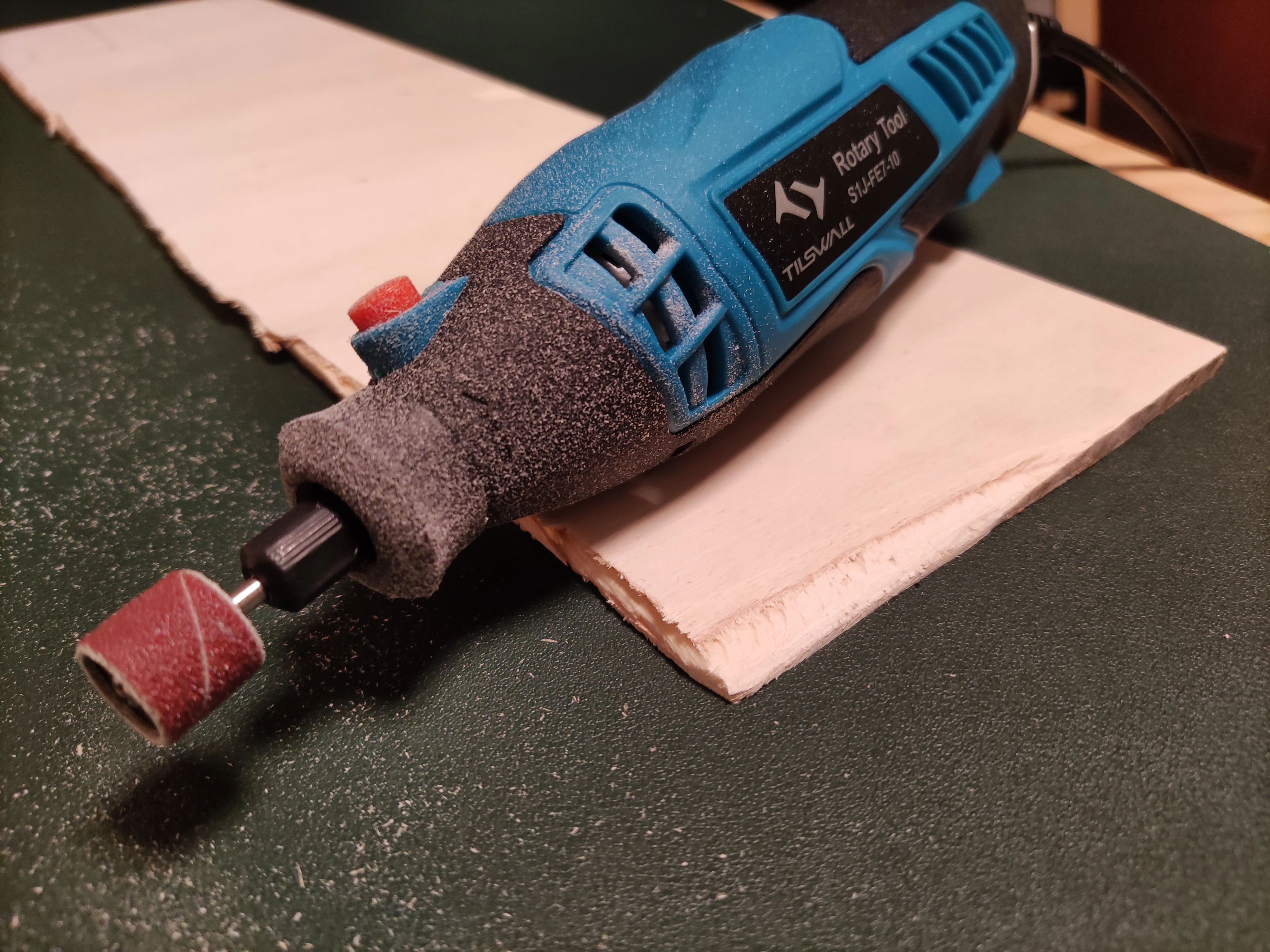 Das An- bzw. Ausschalten ist auch beim Tilswall Multifunktionswerkzeug an sich unnötig umständlich, dadurch, dass der Schalter auf der Unterseite am Ende ist, aber bei dem Preis kann ich damit leben. Das Austauschen der Bits läuft auch problemlos, das Gerät riecht zu Beginn minimal nach Plastik im Betrieb und ist von der Lautstärke her genau so laut wie der Dremel, der klingt insgesamt aber einfach ruhiger, egal auf welcher Stufe.