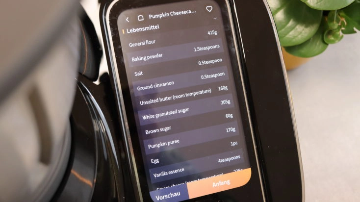 Cool ist, dass manche der Rezepte sogar mit einem Video versehen sind, welches entweder das fertige Gericht oder die Zubereitung zeigen. Das gilt aber eher für manche, meist bekommt man ein Bild, die Zutatenliste, das benötigte Hilfswerkzeug wie die Messlöffel und die Gesamtdauer. Dann kann man sich durch die verschiedenen Schritte klicken, was gut funktioniert. Muss z.B. eine Flüssigkeit hinzugefügt werden, wird die Waage automatisch aktiviert, so dass man bspw. 100g hinzufügen kann. Man kann zudem jederzeit wieder zwischen den Schritten hin- und her springen.
