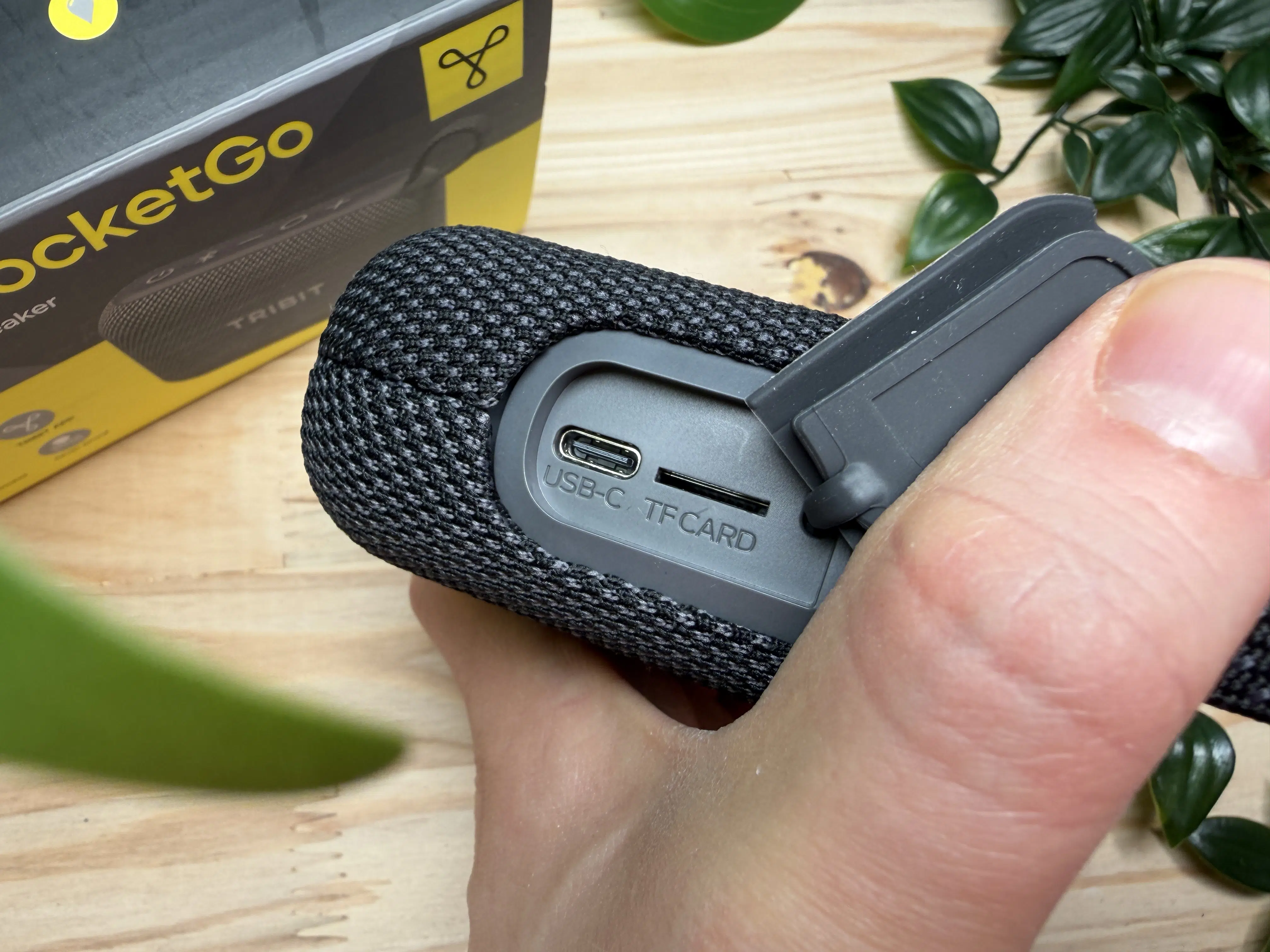 Da habe ich wirklich nicht schlecht gestaunt, hinter der Gummikappe auf der rechten Seite des Tribit PocketGo versteckt sich neben dem USB-C-Ladeanschluss ein echtes Highlight! Ein MicroSD-Karten-Slot. Damit kann der Lautsprecher Musik ganz ohne externe Quelle direkt von einer eingelegten Speicherkarte abspielen. Einfach Songs draufziehen, Karte einlegen, und schon läuft die Musik, ganz ohne Bluetooth-Verbindung.