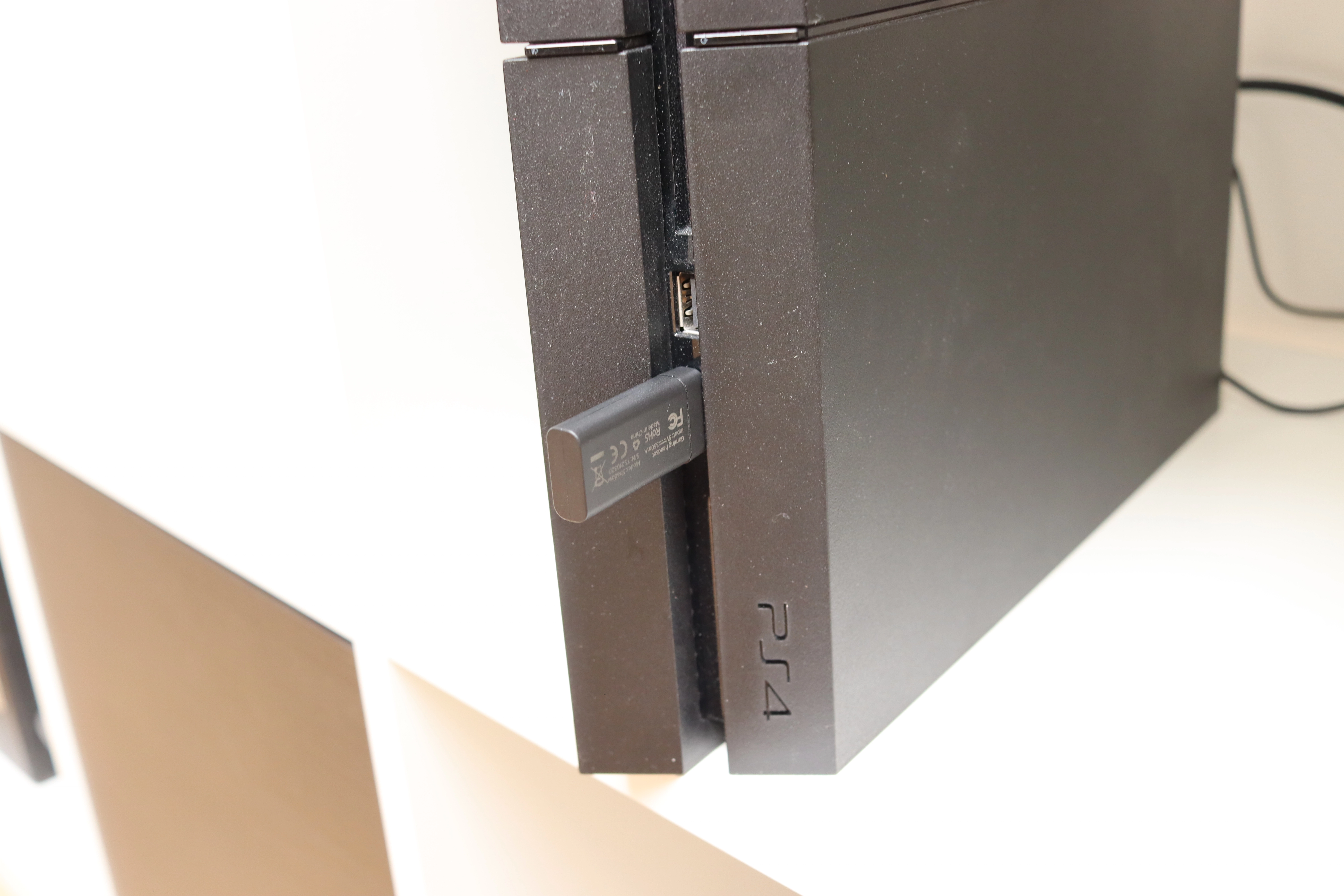 Verbunden wird das Headset über einen USB-A-Stick, den ihr in das jeweilige Gerät einstecken müsst. Über diesen stellt der Kopfhörer eine Funkverbindung her, wodurch eine geringe Latenz vorhanden ist.