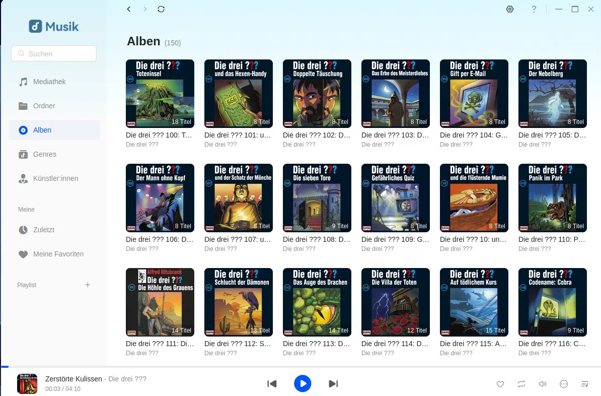 Die Alben werden in der Musik-App zwar erkannt, haben aber einen Nachteil: Trotz der richtigen Benennung der Tracks und aktualisierter Metadaten für die Dateien (über MusicBrainz Picard) werden bei mir die Stücke innerhalb der Alben in der falschen Reihenfolge dargestellt. Das ist insbesondere bei Hörbüchern oder Hörspielen mehr als ärgerlich. Hier ist man auf die richtige Reihenfolge angewiesen.