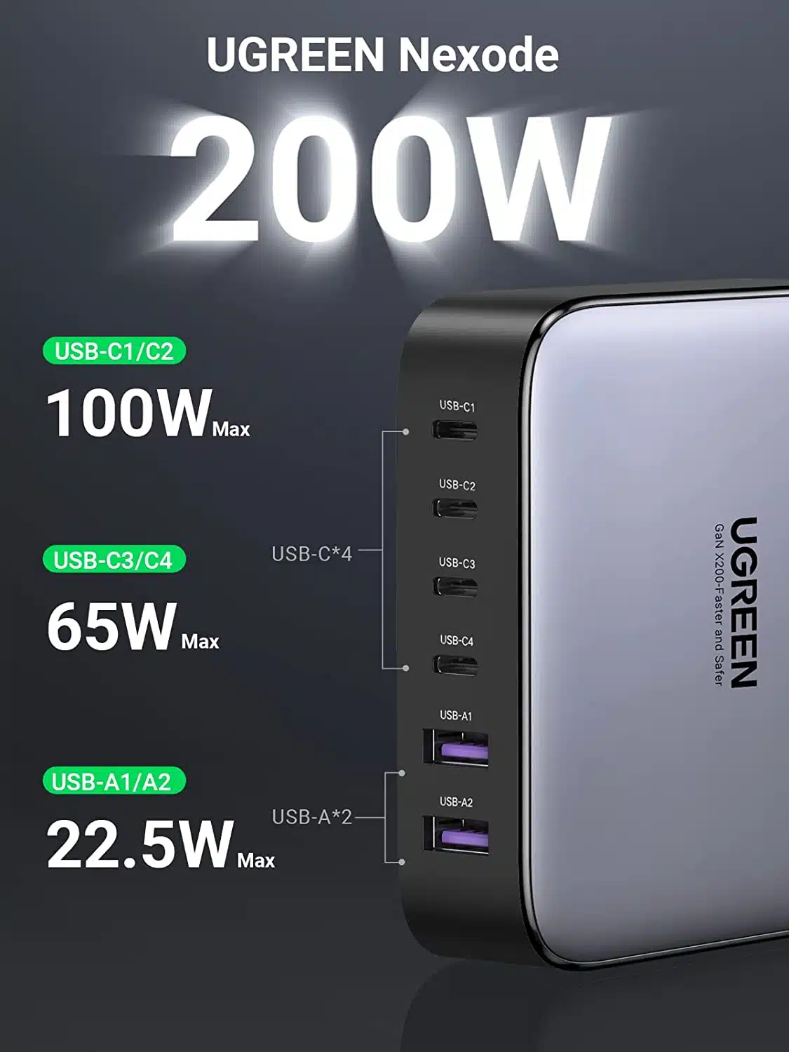 UGREEN Nexode GaN 2 Charger – 200W-Ladegerät mit 6 Anschlüssen
