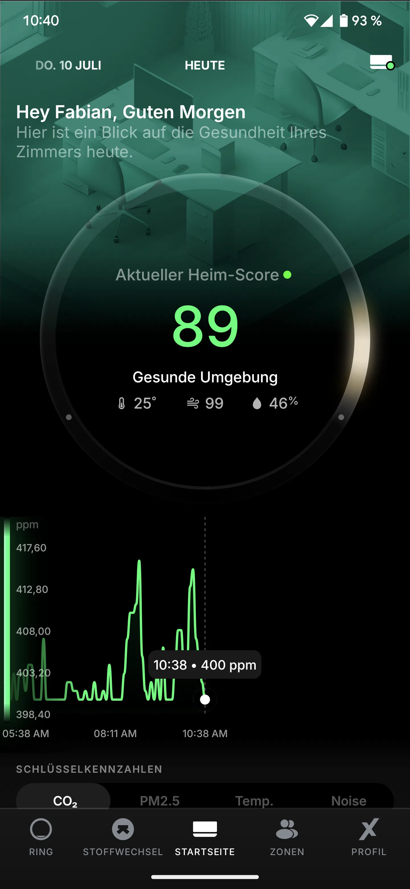Der CO₂-Wert vom Ultrahuman Home ist im übrigen sehr ähnlich zum SwitchBot Meter, wodurch die beiden entweder gleich genau oder ungenau sind. Aber auch hier ist der Verlauf des Wertes beim Lüften nachvollziehbar, weswegen ich eher von einem genauen Wert ausgehe.