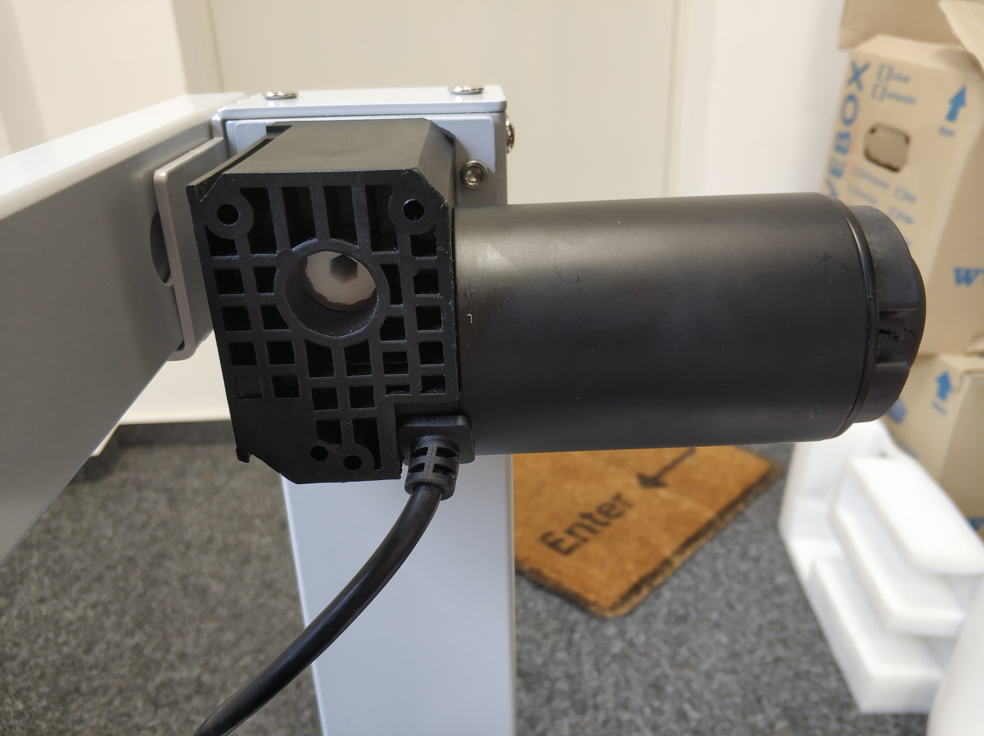 Zur Steuerung der Höhe wird ein kleines „Keypad“ an der Seite angebracht. Durch Pfeiltasten lässt sich die Höhe verstellen und der gewünschte Wert auch abspeichern. So kann man die für sich richtige Stehhöhe beim Arbeiten finden und muss diese nicht immer wieder neu bestimmen.