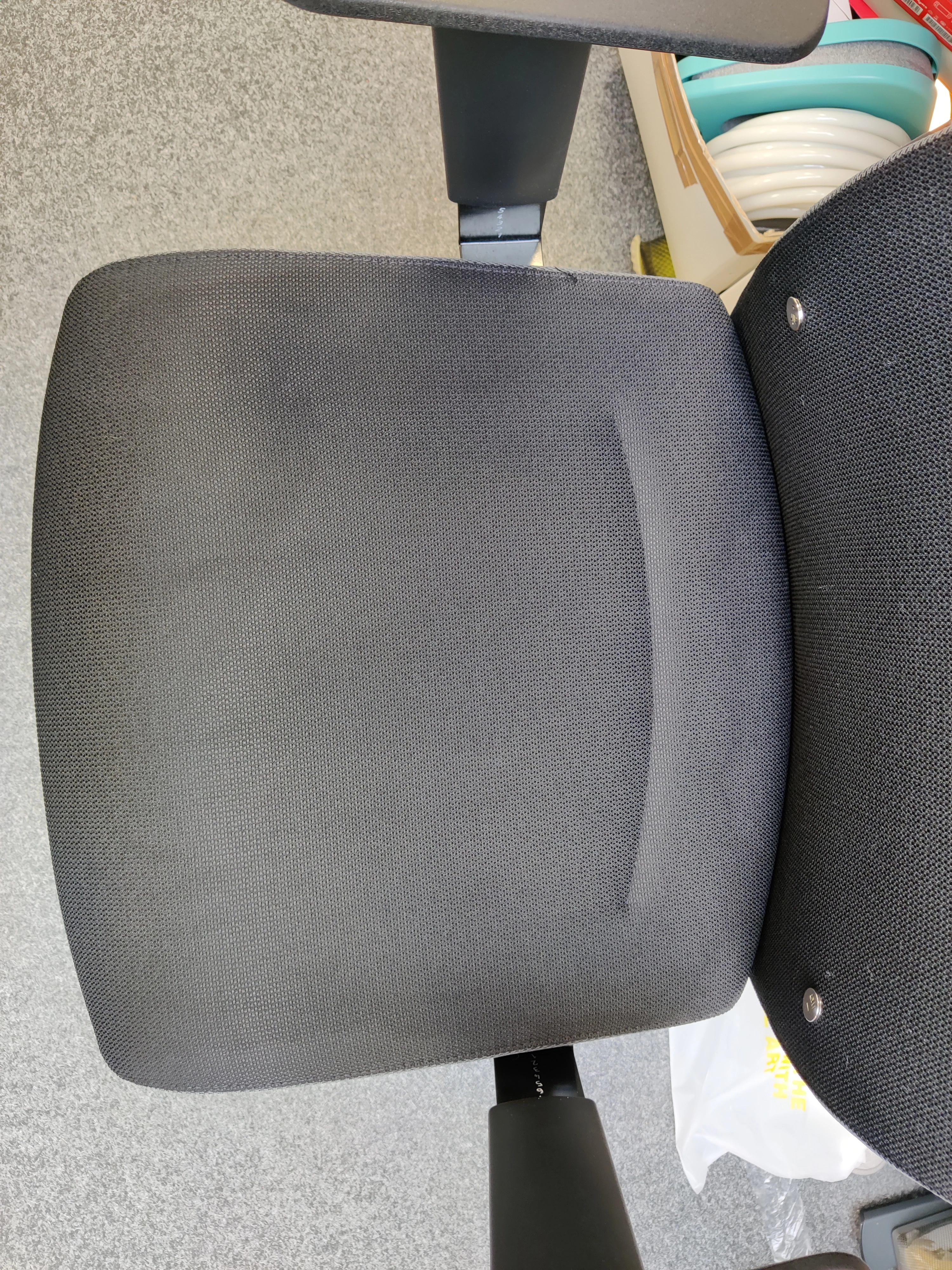 Nutzt man ein geeignetes Reinigungsmittel, sieht das Ergebnis deutlich besser aus. Die Sitzfläche des Bürostuhls sieht jetzt quasi aus wie neu, wenn man von den Fusseln absieht, aber das ist ja eher die Aufgabe von einem anderen Gadget.