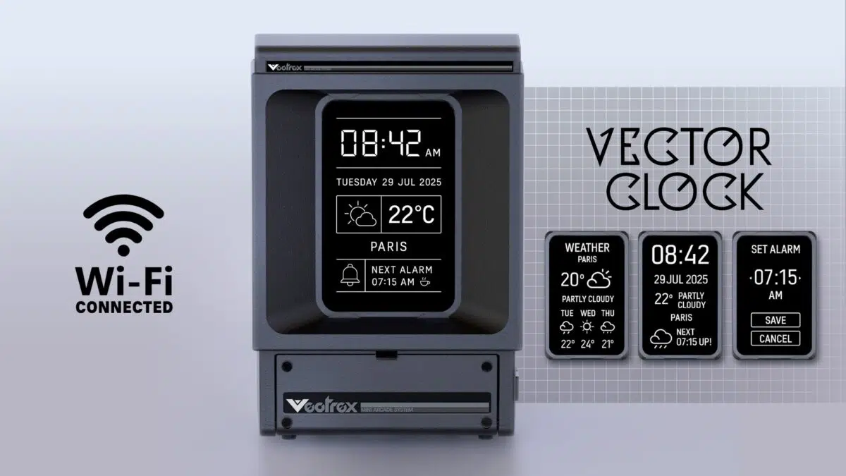 Eine weitere Funktion, die es beim Original so nicht gab, nennt sich Vector Clock. Hierbei handelt es sich um eine Darstellung von Uhrzeit, Kalender und Wetter auf dem Display. So erfüllt die Konsole auch, wenn man gerade nicht damit spielt, einen Zweck als Wecker auf dem Nachttisch.
