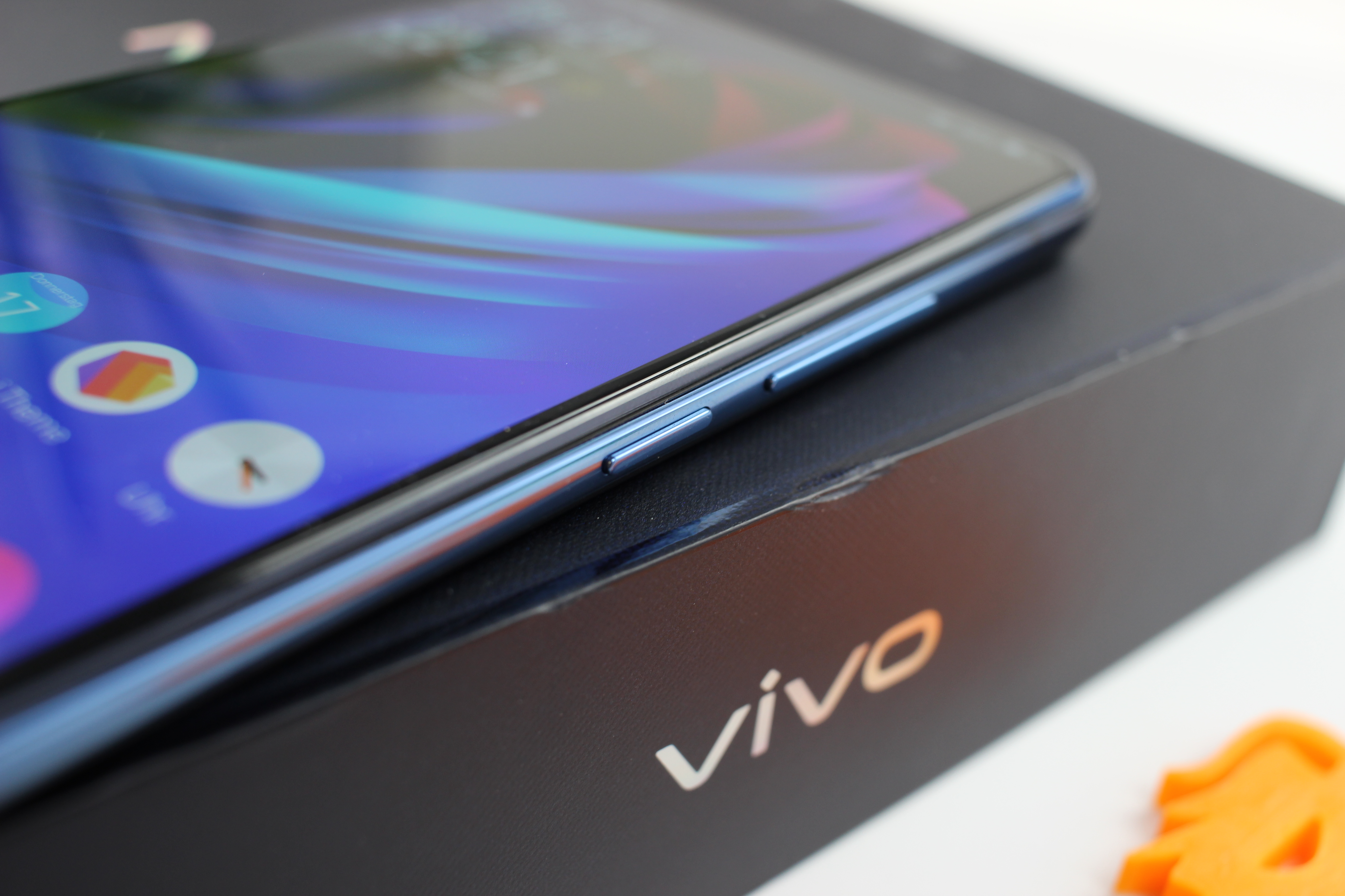 Der Rahmen besteht aus farblich blau oder rot angepasstem Metall und ist symmetrisch geformt. Allerdings ist er nicht komplett glatt, sondern hat zwei Kanten. Dies verbessert den Grip, was bei so einem „Glas-Sandwich“ durchaus sinnvoll ist. Zum Schutz legt Vivo außerdem noch einen dicken Bumper aus Hartgummi bei, welcher etwas über die Display hinausragt. Diesen sollte man also am besten immer am Gerät haben, auch wenn er das mit Maßen von 157,19 x 75,3 x 8,09 mm generell schon nicht so handliche Smartphone nochmal etwas vergrößert. Beim Glas handelt es sich auf beiden Seiten um Gorilla Glass 5, welches von Werk aus von Schutzfolien geschützt wird.