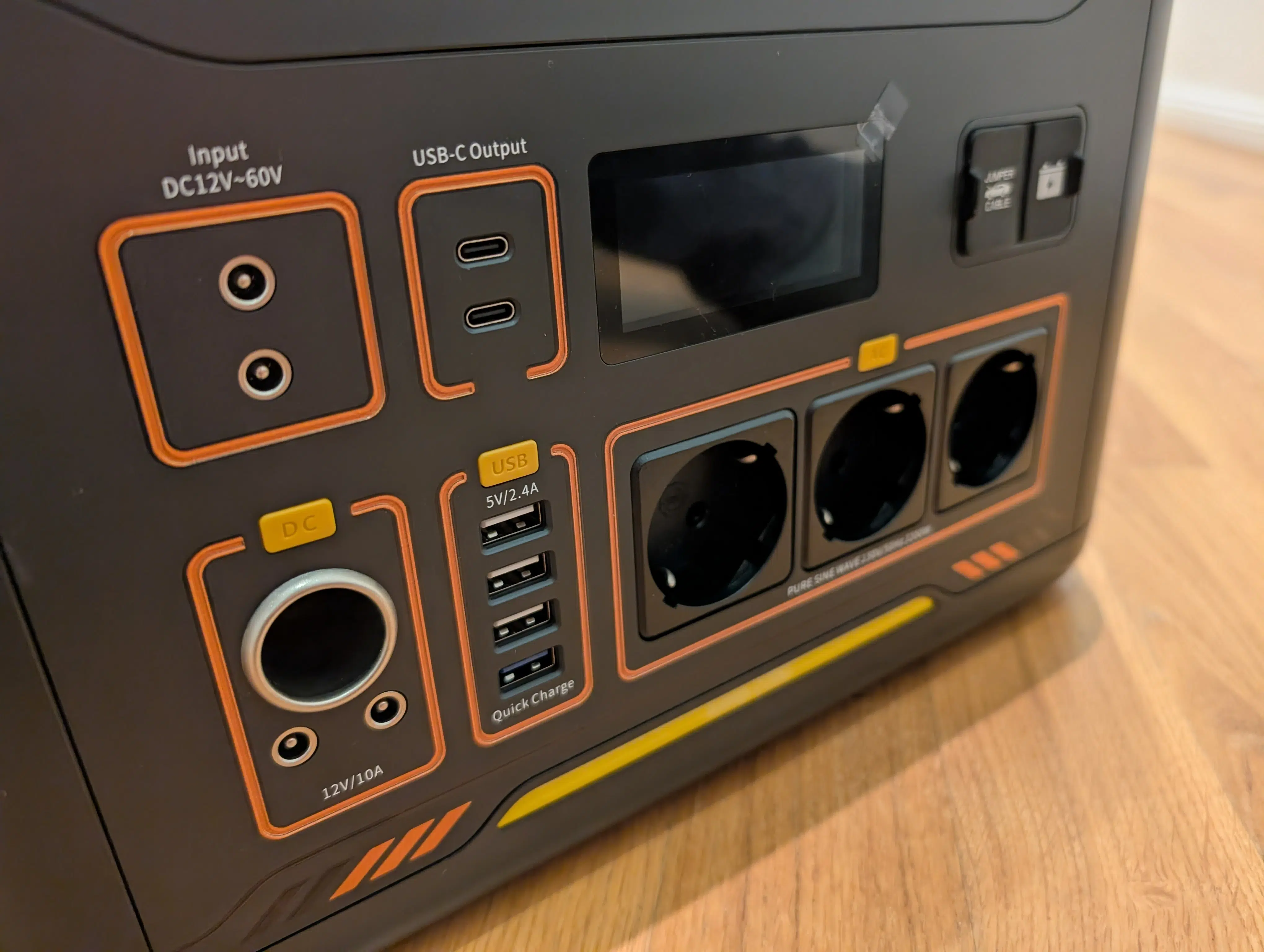 Die Box verträgt bis zu 400 Watt Solar-Input (12-60V). Da kein Kabel beiliegt, benötigt ihr ein Panel mit passendem Anschluss (DC5521 oder Adapter auf diesen Port).