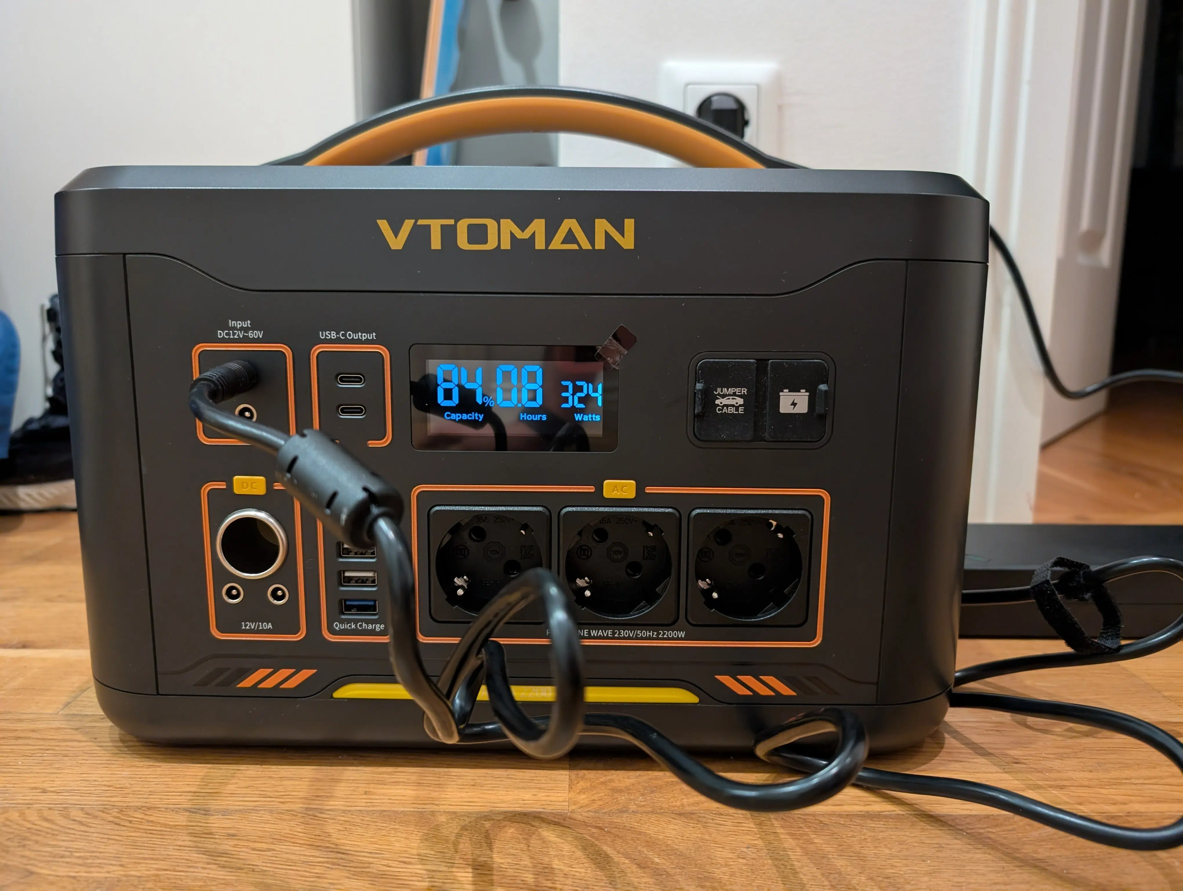 So gut die Leistung ist, beim Laden hinkt die VTOMAN Jump 2200 Topmodellen etwas hinterher: Eine Volladung dauert knapp 4 Stunden (3:56h im Test). Das ist okay, aber nicht rasend schnell.