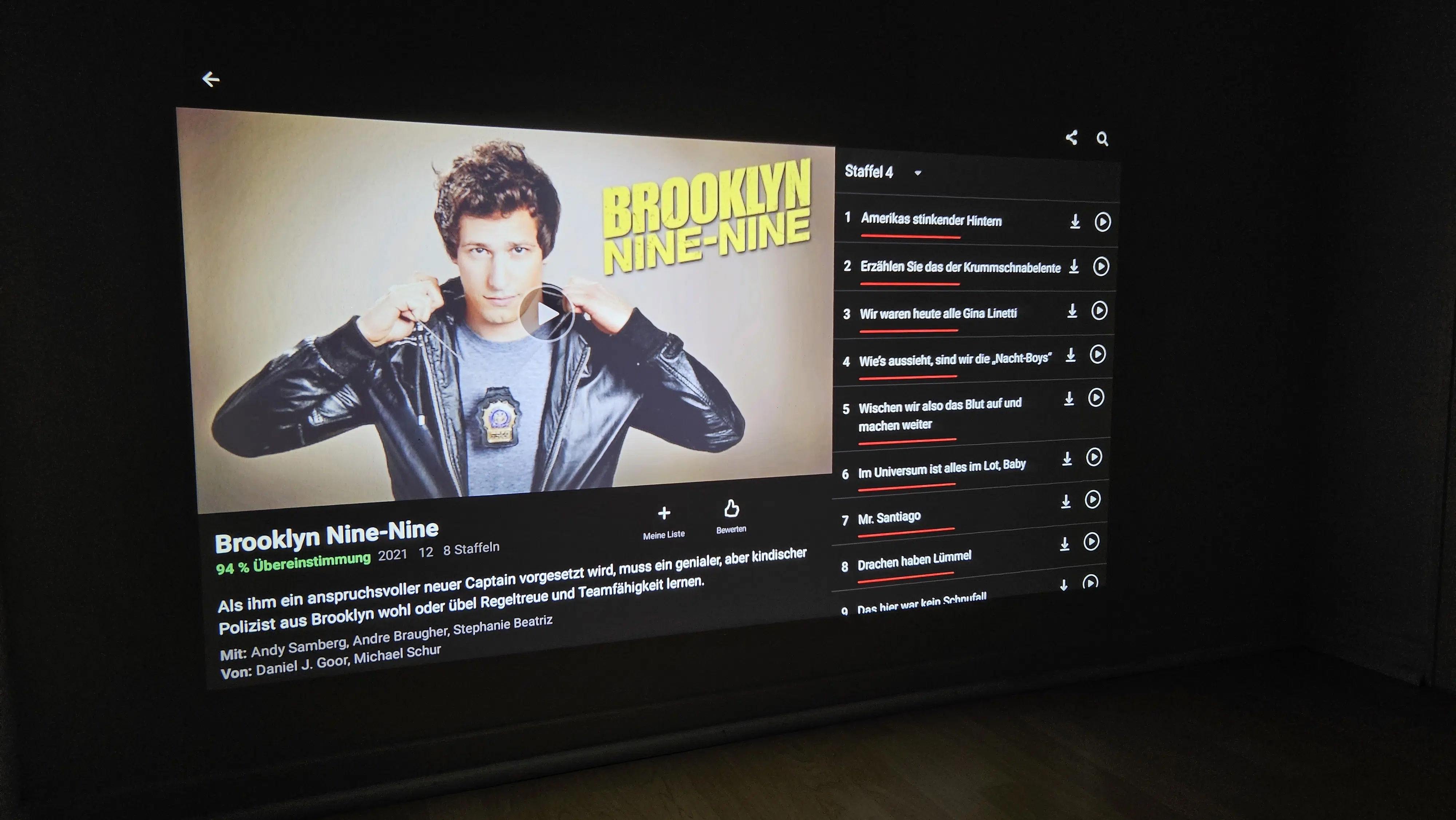 Leider sind die Apps nicht wirklich für den Beamer optimiert. In Netflix wie in Prime lassen sich nicht alle Einstellungen mit den Richtungstasten der Fernbedienung vornehmen und man ist gezwungen, auf die sehr umständliche Mauszeiger-Bedienung umzuschalten. Ausgewählte Menüpunkte sind außerdem nicht immer farblich hervorgehoben. Das ganze Design der Netflix-App wirkt sehr antiquiert und die Navigation ist eher anstrengend.