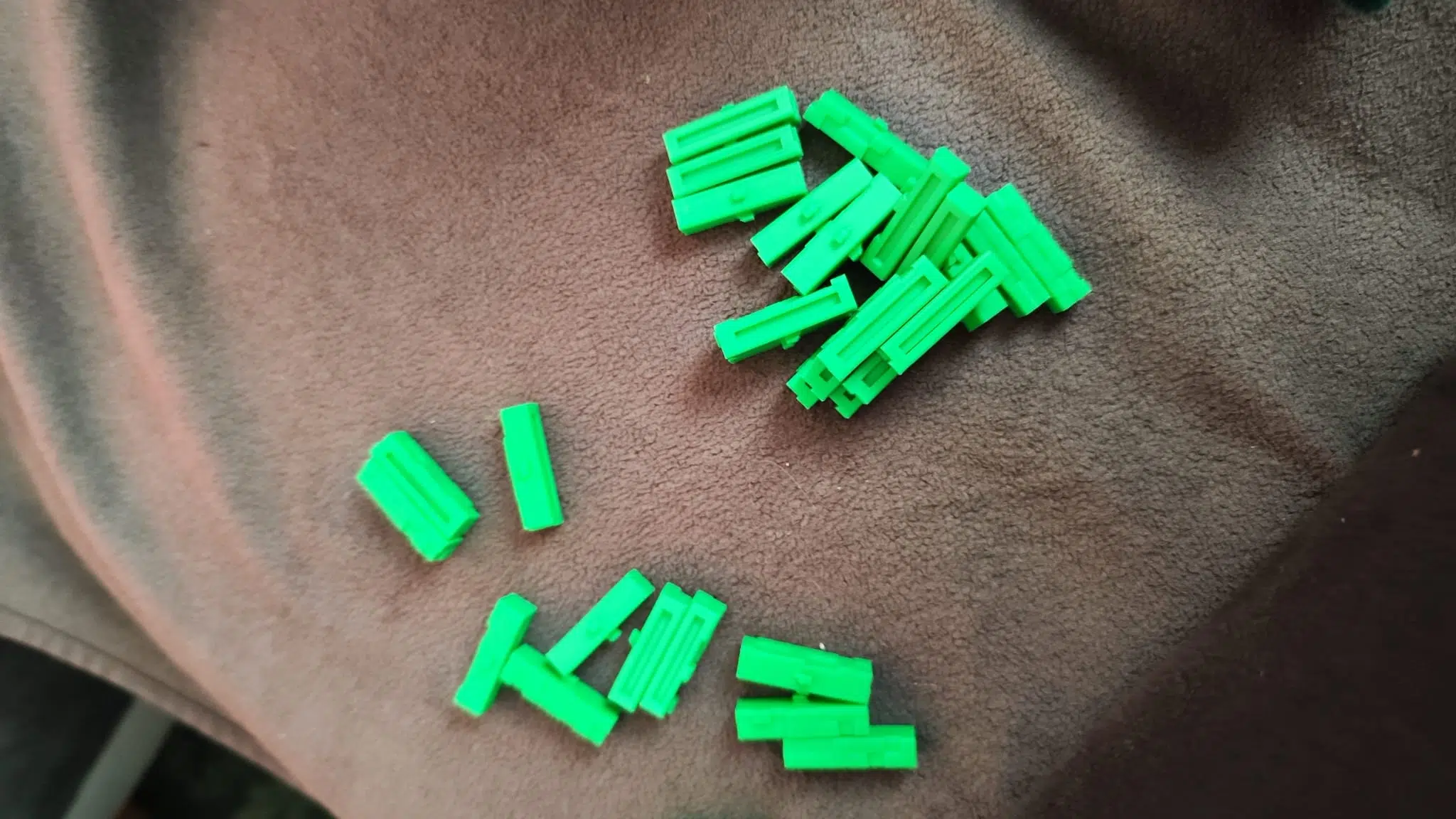 Leider hat mein zweiter Versuch mit diesen „articulated toys“ nicht mehr geklappt. Es sollten direkt zwei dieser beweglichen Creeper Köpfe werden. Und sie sahen auch wunderschön aus, bis ich sie vom Heatbed heben wollte und sie direkt in alle ihre Einzelteile zerfallen sind. Die kleinen Plastiknippel, die für die Befestigung in den Schienen gedacht sind, sind einfach zu klein, um dort richtig Grip zu haben. Leider auch nichts, was ich meiner Meinung nach hätte reparieren können.