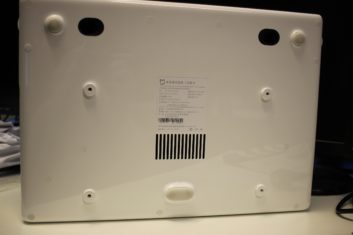 Ebenfalls auf der Rückseite befindet sich der Anschluss für das Stromkabel. Dabei handelt es sich um einen Anschluss mit Kleeblattkupplung; das beiliegende Kabel hat allerdings einen chinesischen Typ 1 Netzstecker. Ihr braucht aber entweder einen Adapter oder aber gleich einfach ein entsprechendes Kabel mit EU-Stecker. Falls ihr so eins nicht eh zu Hause habt, findet ihr die für ein paar Euro zum Beispiel auf Amazon.