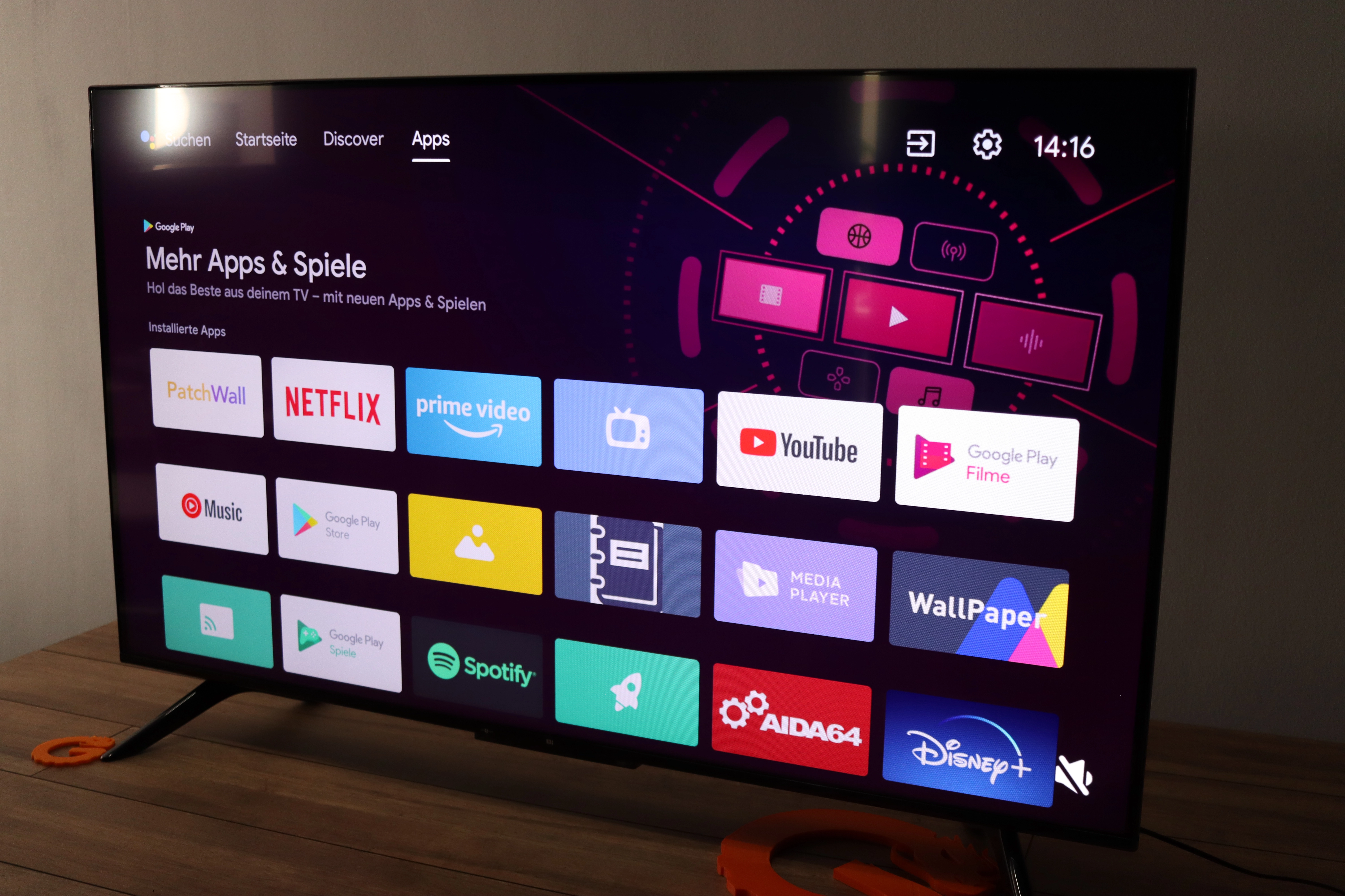 Das Betriebssystem des Xiaomi Fernsehers ist auf Android TV 10. Durch dieses stehen euch zahlreiche Apps aus dem Play Store zur Verfügung. So könnt ihr dann auch Apps für Disney+, Spotify oder DAZN herunterladen.