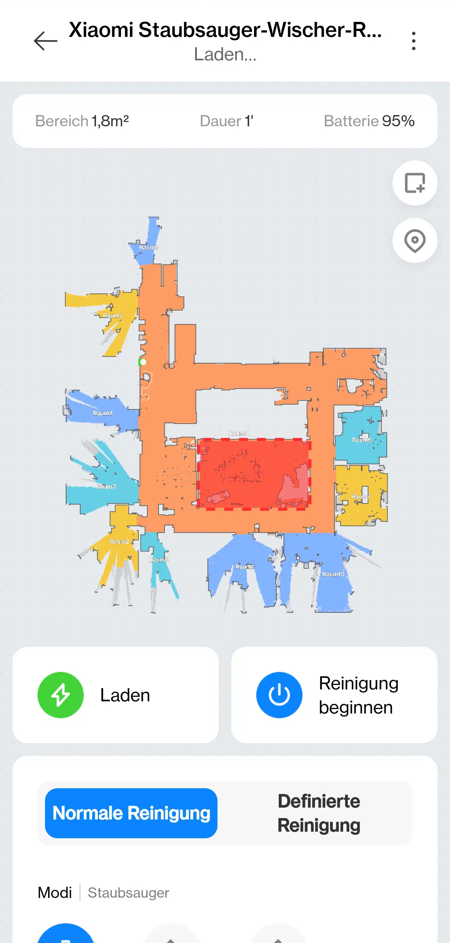 Jetzt kann man eine Karte erstellen lassen und anschließend auch anpassen. Dafür gibt es virtuelle Wände und Sperrzonen. Auch die Räume werden automatisch erkannt und eingeteilt. So kann man den Saugroboter auch einen beliebigen Raum einzeln reinigen lassen. Ebenfalls kann man hier Updates durchführen und Saug- und Wischkraft anpassen. Ebenso ist es möglich, die Lautstärke der Sprachausgabe des Saugroboters zu ändern und ein anderes Sprachpaket zu installieren. Neben Englisch und weiteren europäischen Sprachen ist auch Deutsch verfügbar.