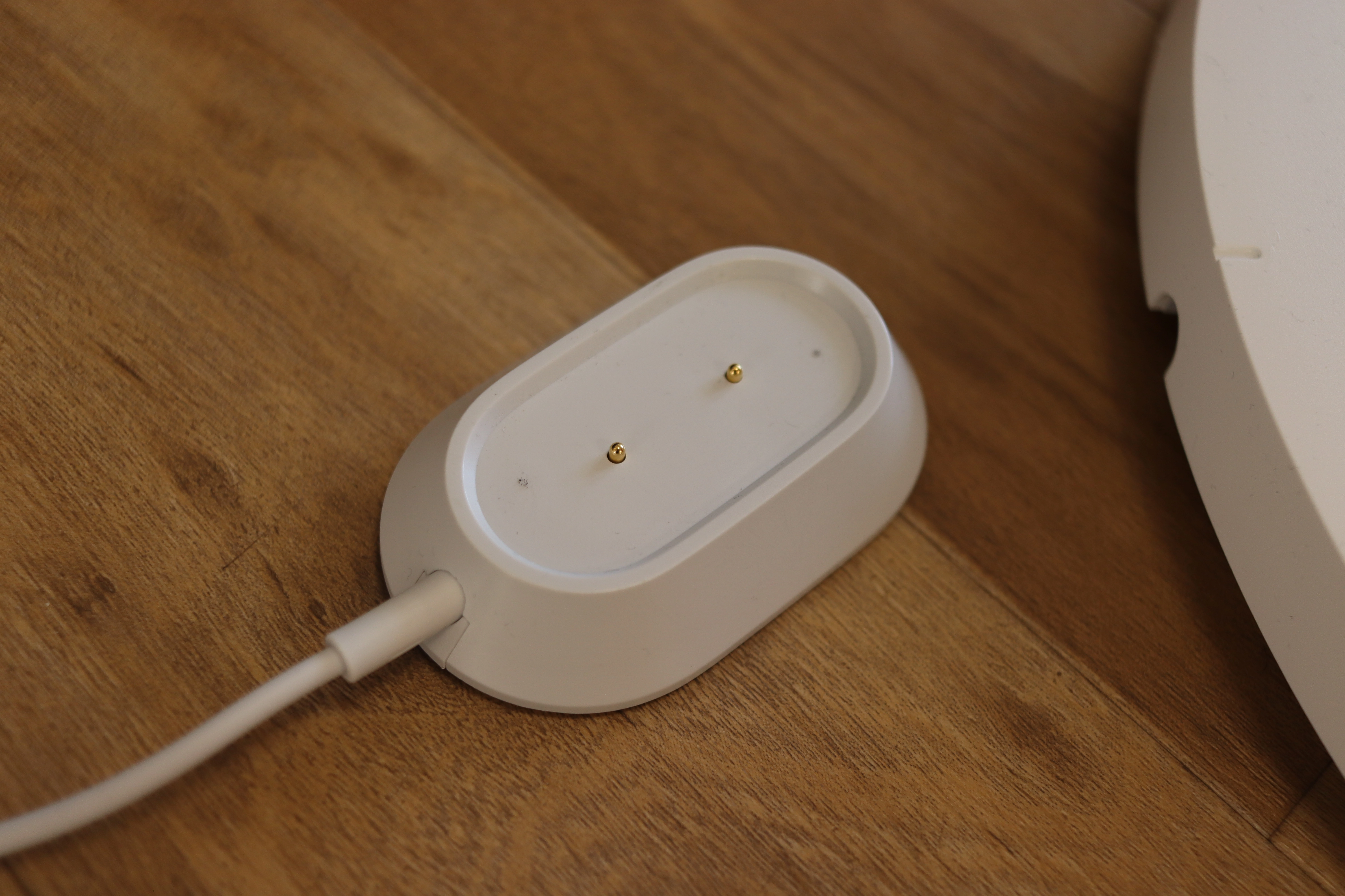 In der Praxis erweist sich die POGO-Ladestation durchaus als praktisch. Da sie magnetisch ist, schnappt das Ladegerät automatisch an die richtige Stelle, was fast immer funktioniert. Allerdings muss man entweder den Fuß aufs Kabel stellen, damit die Ladestation am Platz bleibt. Die Ladestation löst sich aber, wenn das Kabel auf Spannung ist, verrutscht dann aber in der Position entsprechend.