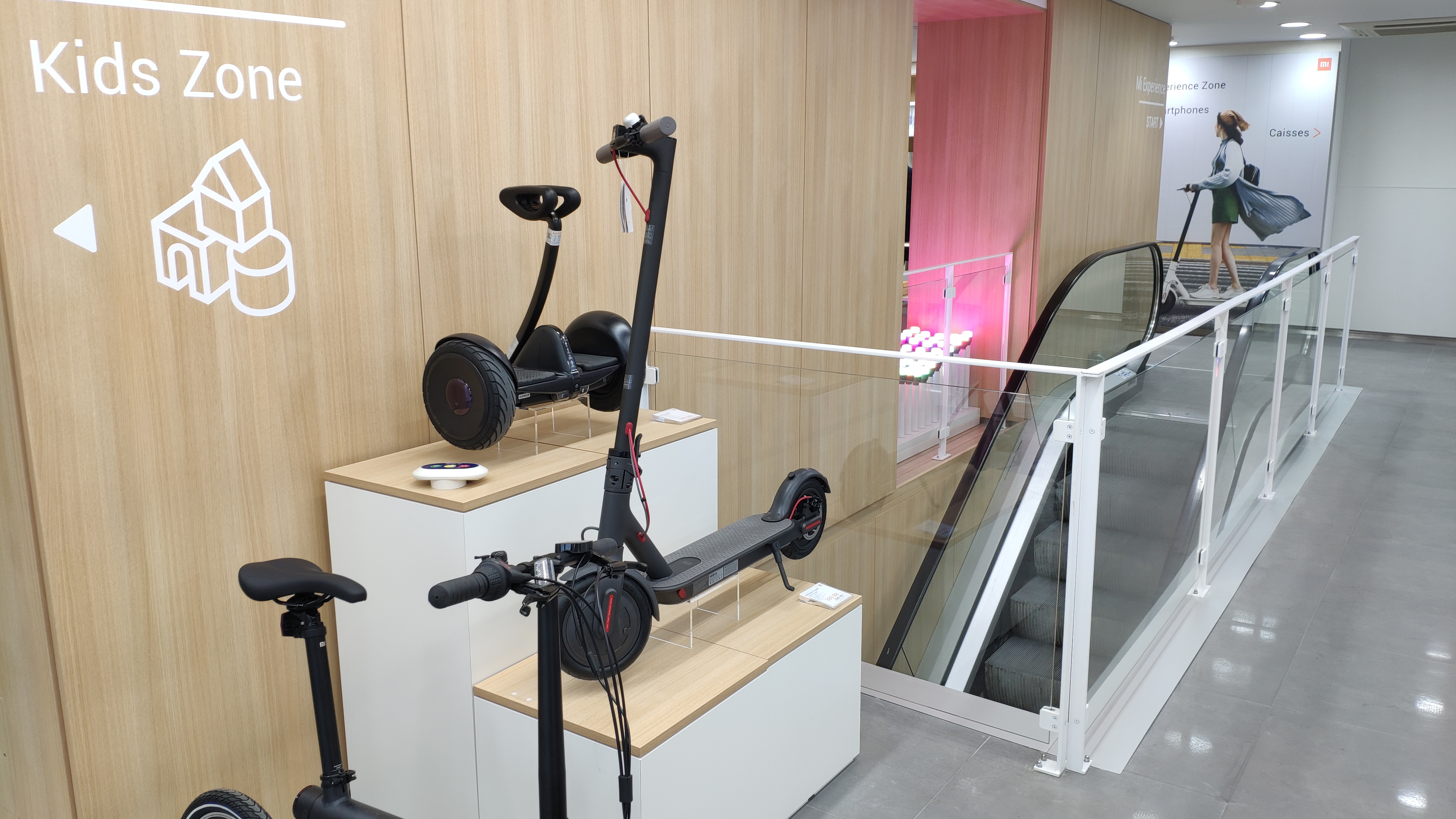 Da ist direkt das Xiaomi Mi Mix 3, aber auch das Mi 8 und das tolle Mittelklasse-Modell Xiaomi Mi 8 Lite zu finden. Logisch, schließlich sind die Smartphones von Xiaomi wohl die beliebtesten Produkte mit dem Mi-Logo. Sonst bekommen wir nur noch eine Mitarbeitern auf einem selbstbalancierenden Ninebot-Wheel zu sehen – immerhin!