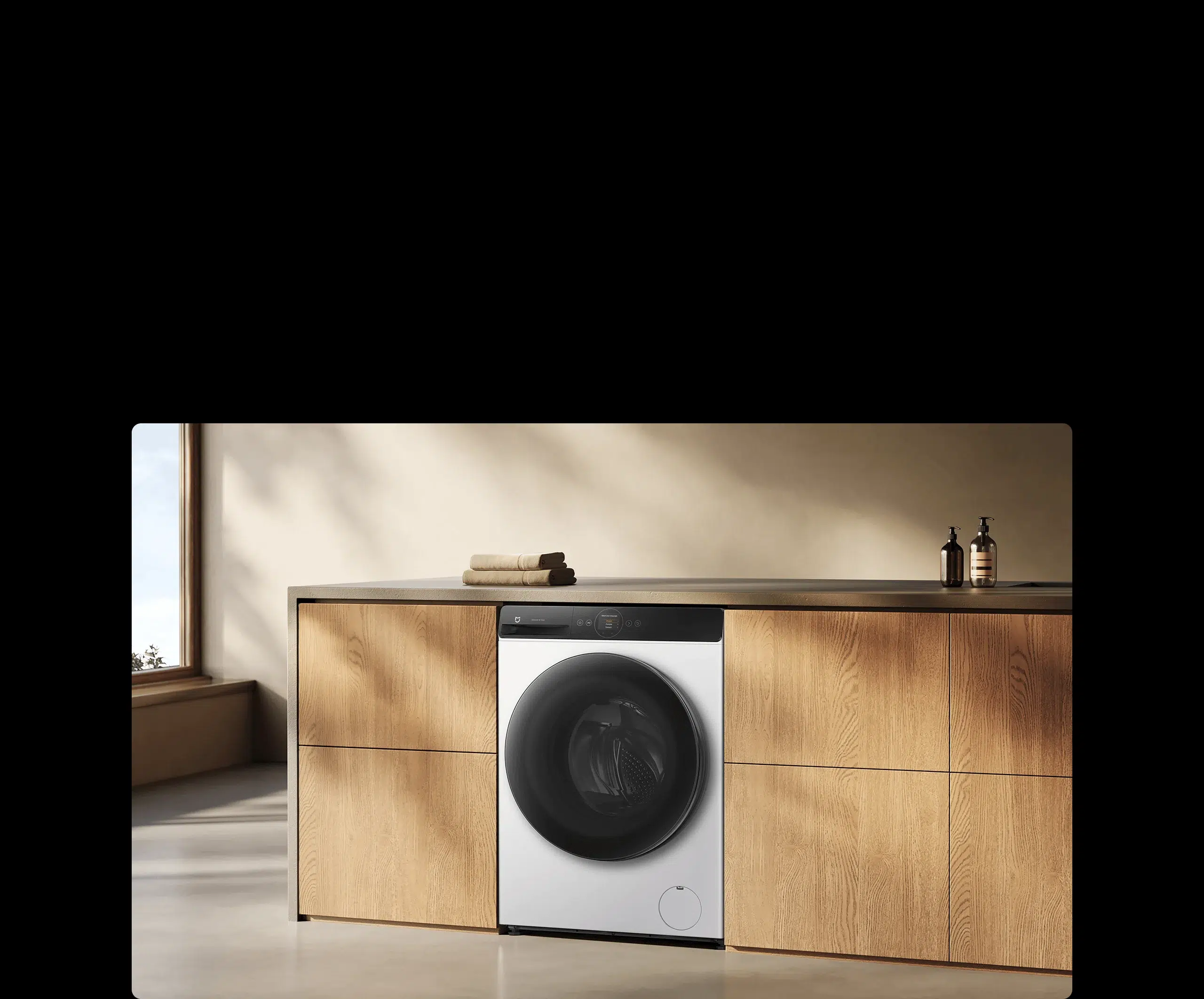 Besonders cool ist das Bedienfeld. Xiaomi verabschiedet sich hier von klassischen, mechanischen Drehknöpfen und setzt stattdessen auf einen intuitiven Touchscreen, der optisch an ein modernes „Gravitationsfeld“ angelehnt ist. Das sieht nicht nur futuristisch aus, sondern macht die Reinigung der Frontoberfläche auch deutlich einfacher.